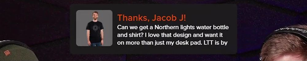 Thanks, Jacob J! Can we get a Northern lights water bottle and shirt? I love that design and want it on more than just my desk pad. LTT is by