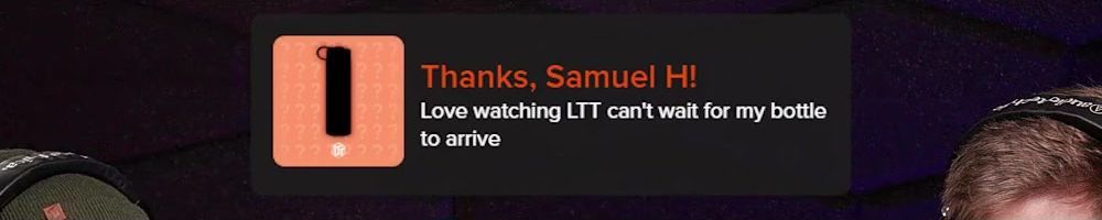 Thanks, Samuel H! Love watching LTT can't wait for my bottle to arrive