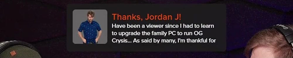 Thanks, Jordan J! Have been a viewer since I had to learn to upgrade the family PC to run OG Crysis... As said by many, I'm thankful for