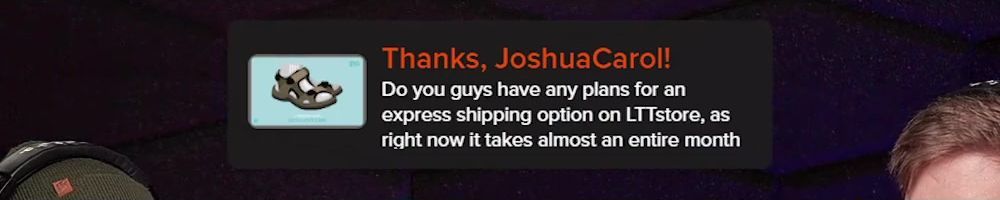 Thanks, JoshuaCarol! Do you guys have any plans for an express shipping option on LTTstore, as right now it takes almost an entire month