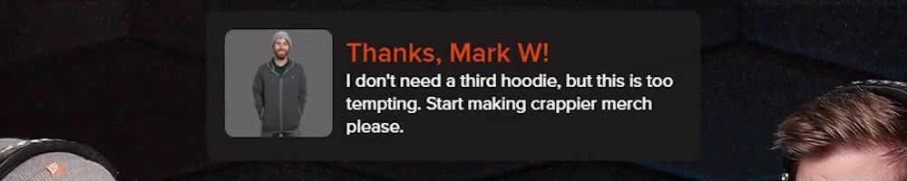 Thanks, Mark W! I don't need a third hoodie, but this is too tempting. Start making crappier merch please.