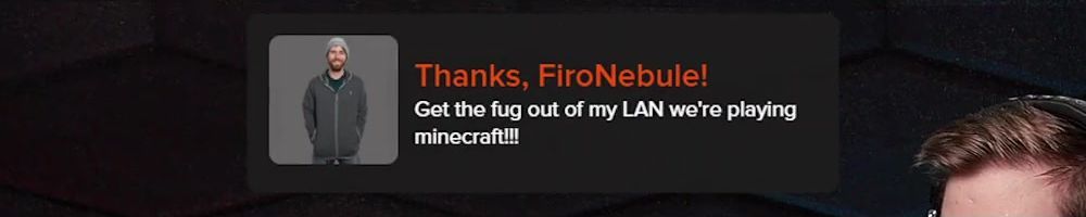 Thanks, FiroNebule! Get the fug out of my LAN we're playing minecraft!!!
