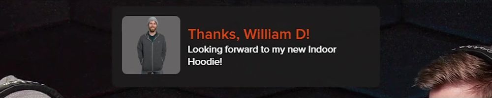 Thanks, William D! Looking forward to my new Indoor Hoodie!