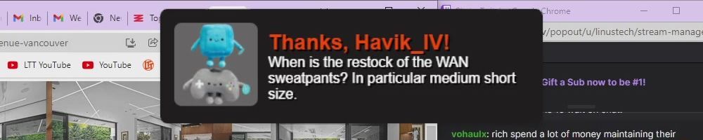 Hint: Use CTRL + F to search messages in this show, or use Whenplane's WAN Show Search tool to search for messages in all shows.