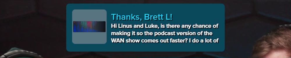 Hint: Use CTRL + F to search messages in this show, or use Whenplane's WAN Show Search tool to search for messages in all shows.