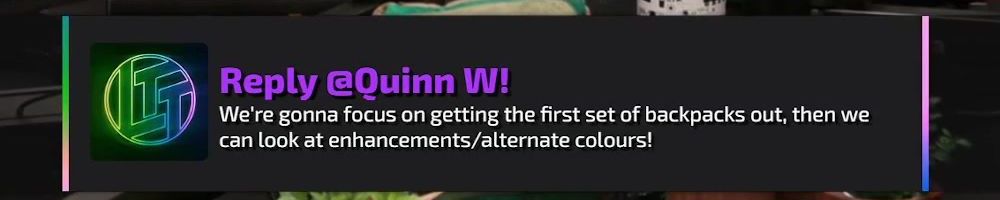 Hey, thanks for making such great merch, everyone loves my swacket! Will the backpack have different colors inside? The orange is fine but I would like green. Can't wait to purchase it no matter what.