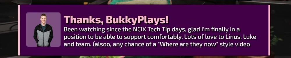 Been watching since the NCIX Tech Tip days, glad I'm finally in a position to be able to support comfortably. Lots of love to Linus, Luke and team. (alsoo, any chance of a "Where are they now" style video
