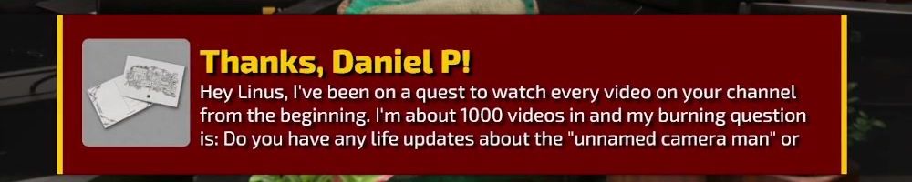 Hey Linus, I've been on a quest to watch every video on your channel from the beginning. I'm about 1000 videos in and my burning question is: Do you have any life updates about the "unnamed camera man" or