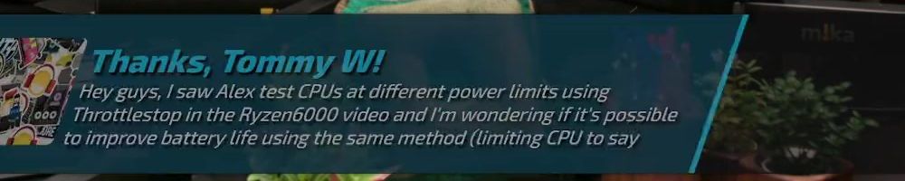 Hey guys, I saw Alex test CPUs at different power limits using Throttlestop in the Ryzen6000 video and I'm wondering if it's possible to improve battery life using the same method (limiting CPU to say