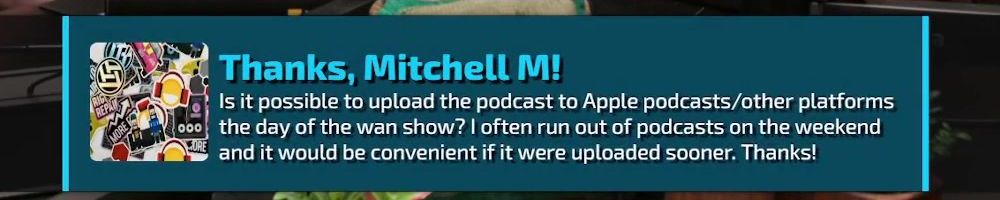 Is it possible to upload the podcast to Apple podcasts/other platforms the day of the wan show? I often run out of podcasts on the weekend and it would be convenient if it were uploaded sooner. Thanks!