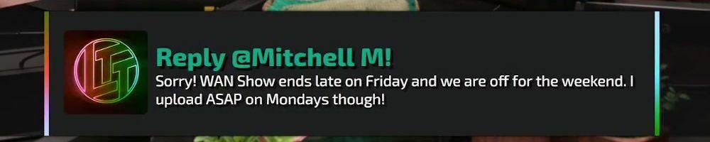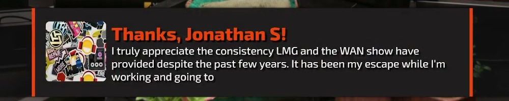 I truly appreciate the consistency LMG and the WAN show have provided despite the past few years. It has been my escape while I'm working and going to