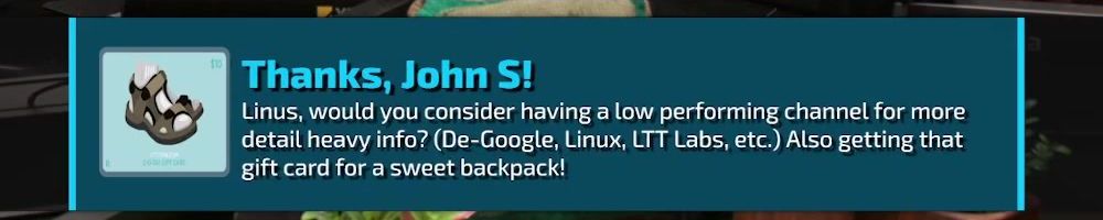 Linus, would you consider having a low performing channel for more detail heavy info? (De-Google, Linux, LTT Labs, etc.) Also getting that gift card for a sweet backpack!