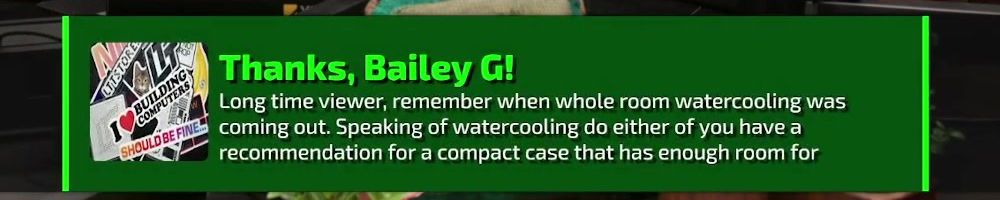 Long time viewer, remember when whole room watercooling was coming out. Speaking of watercooling do either of you have a recommendation for a compact case that has enough room for