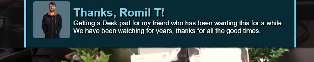 Thanks, Romil T! Getting a Desk pad for my friend who has been wanting this for a while. We have been watching for years, thanks for all the good times.