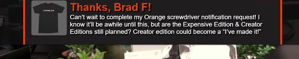 Thanks, Brad F! Can't wait to complete my Orange screwdriver notification request! I know it'll be awhile until this, but are the Expensive Edition & Creator Editions still planned? Creator edition could become a “I've made it!”