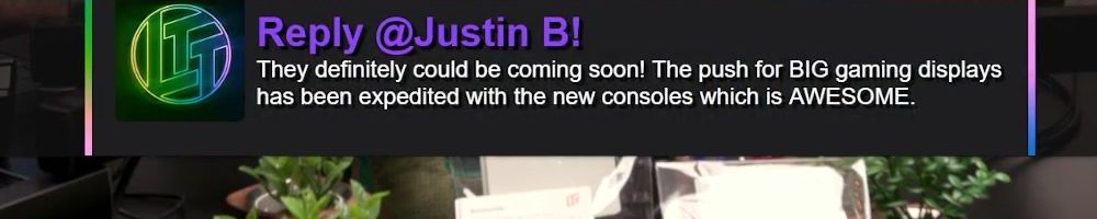 Reply @Justin B! They definitely could be coming soon! The push for BIG gaming displays has been expedited with the new consoles which is AWESOME.