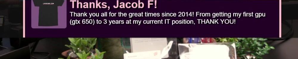 Thanks, Jacob F! Thank you all for the great times since 2014! From getting my first gpu (gtx 650) to 3 years at my current IT position, THANK YOU!