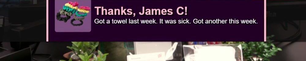 Thanks, James C! Got a towel last week. It was sick. Got another this week.