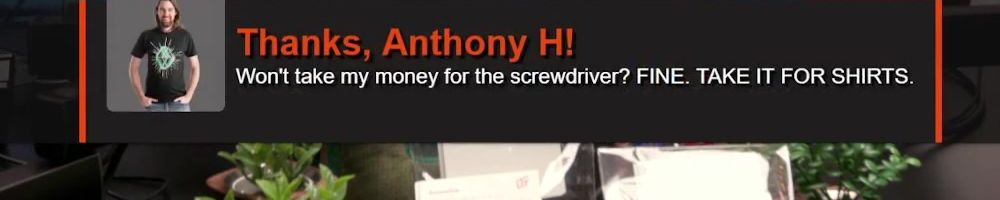 Thanks, Anthony H! Won't take my money for the screwdriver? FINE. TAKE IT FOR SHIRTS.