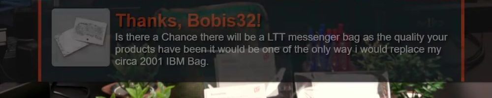 Thanks, Bobis32! Is there a Chance there will be a LTT messenger bag as the quality your products have been it would be one of the only way i would replace my circa 2001 IBM Bag.