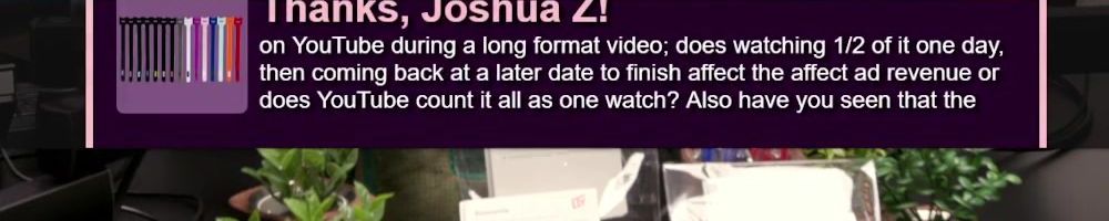 Thanks, Joshua Z! on YouTube during a long format video; does watching 1/2 of it one day, then coming back at a later date to finish affect the affect ad revenue or does YouTube count it all as one watch? Also have you seen that the