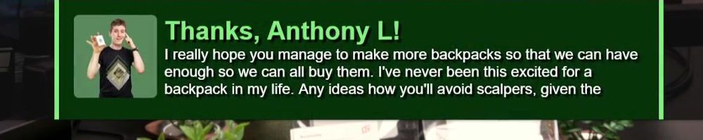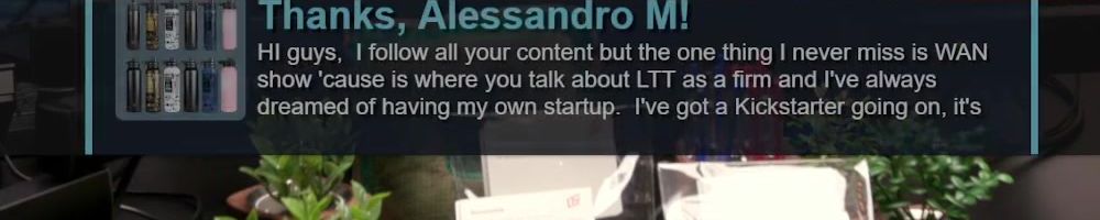 Thanks, Alessandro M! HI guys, I follow all your content but the one thing I never miss is WAN show 'cause is where you talk about LTT as a firm and I've always dreamed of having my own startup. I've got a Kickstarter going on, it's