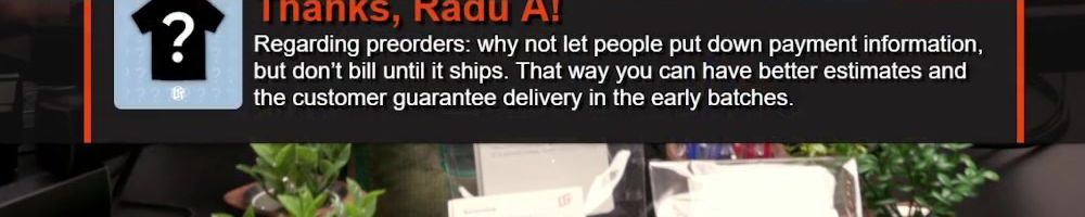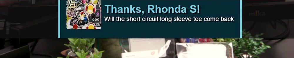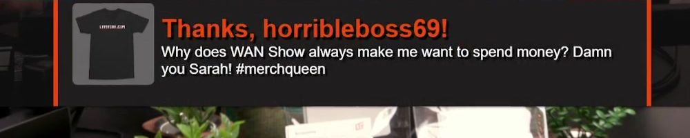 Hint: Use CTRL + F to search messages in this show, or use Whenplane's WAN Show Search tool to search for messages in all shows. Make sure that the "Merch Messages" box is checked when you search for something.