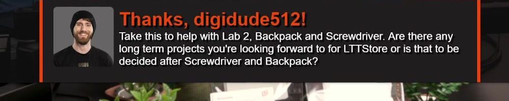 Thanks, Maxwell P! Keep up the great work! Super pumped for LTT Labs.