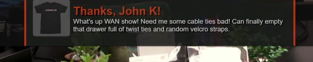 Thanks, John K! What's up WAN show! Need me some cable ties bad! Can finally empty that drawer full of twist ties and random velcro straps.