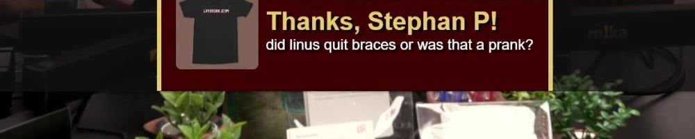 Thanks, Stephan P! did linus quit braces or was that a prank?
