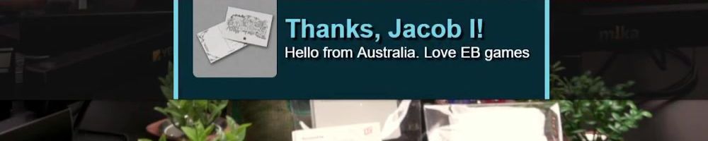 Thanks, Jacob I! Hello from Australia. Love EB games