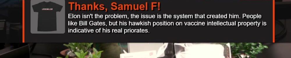 Thanks, Samuel F! Elon isn't the problem, the issue is the system that created him. People like Bill Gates, but his hawkish position on vaccine intellectual property is indicative of his real priorates.