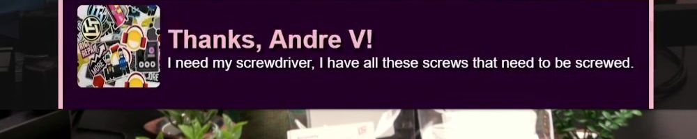 Thanks, Andre V! I need my screwdriver, I have all these screws that need to be screwed.