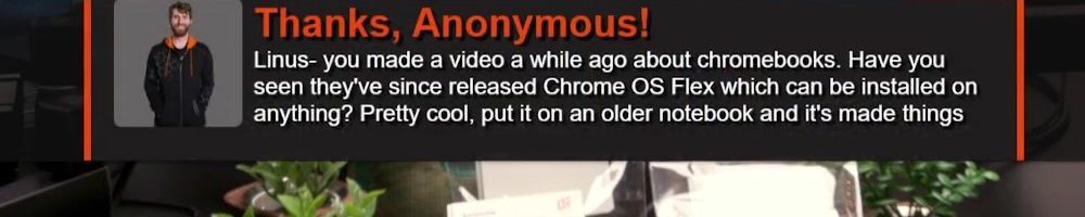 Thanks, Anonymous! Linus- you made a video a while ago about chromebooks. Have you seen they've since released Chrome OS Flex which can be installed on anything? Pretty cool, put it on an older notebook and it's made things