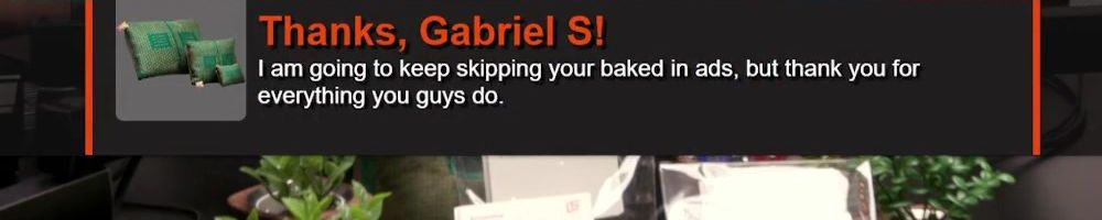 Thanks, Gabriel S! I am going to keep skipping your baked in ads, but thank you for everything you guys do.