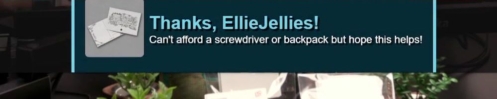 Thanks, EllieJellies! Can't afford a screwdriver or backpack but hope this helps!