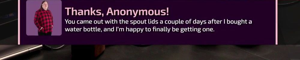 Thanks, Anonymous! You came out with the spout lids a couple of days after I bought a water bottle, and I'm happy to finally be getting one.