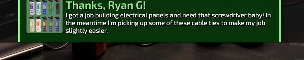Thanks, Ryan G! I got a job building electrical panels and need that screwdriver baby! In the meantime I'm picking up some of these cable ties to make my job slightly easier.