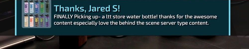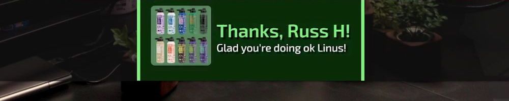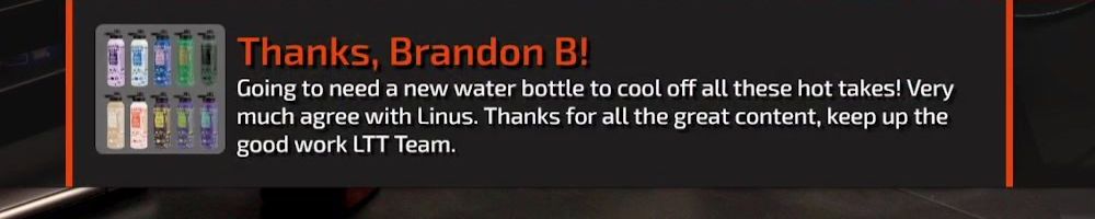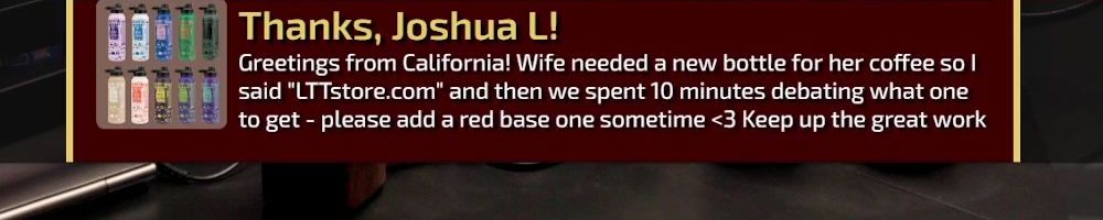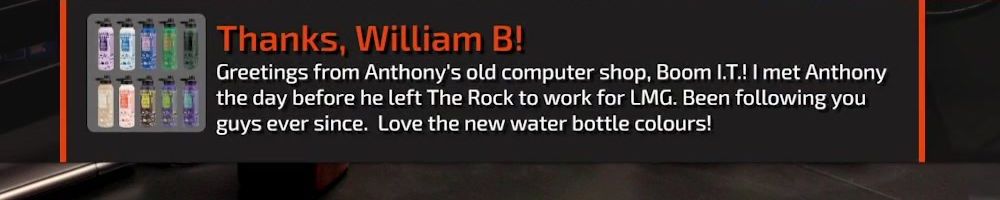 Thanks, William B! Greetings from Anthony's old computer shop, Boom I.T.! I met Anthony the day before he left The Rock to work for LMG. Been following you guys ever since. Love the new water bottle colours!