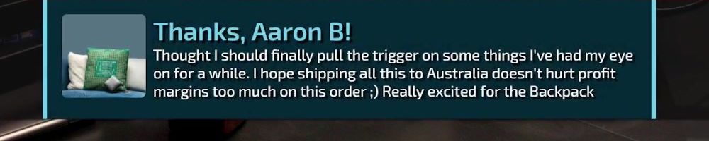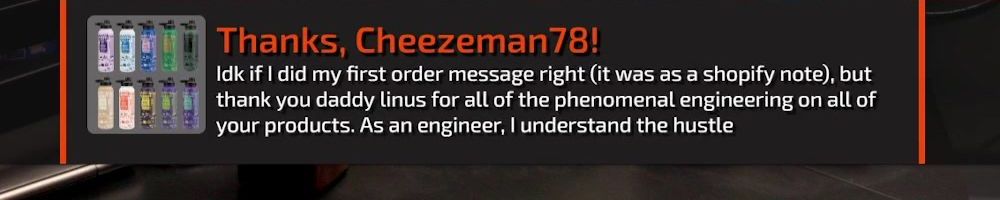 Thanks, Cheezeman78! Idk if I did my first order message right (it was as a shopify note), but thank you daddy linus for all of the phenomenal engineering on all of your products. As an engineer, I understand the hustle