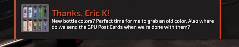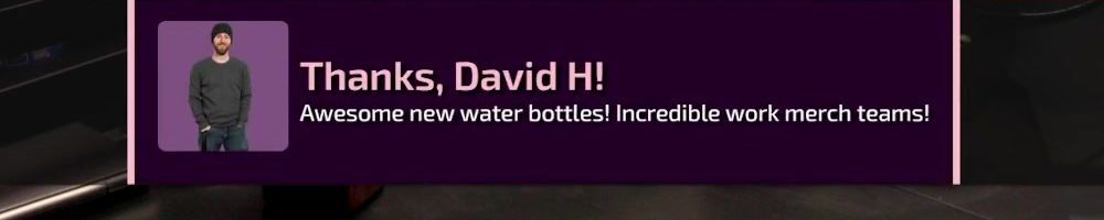 Thanks, David H! Awesome new water bottles! Incredible work merch teams!