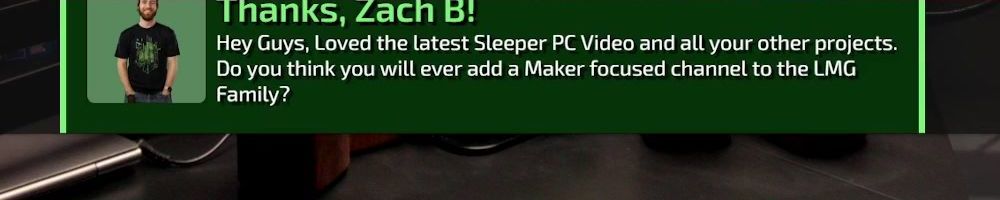 Thanks, Zach B! Hey Guys, Loved the latest Sleeper PC Video and all your other projects. Do you think you will ever add a Maker focused channel to the LMG Family?