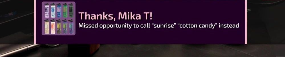 Thanks, Mika T! Missed opportunity to call “sunrise” “cotton candy” instead