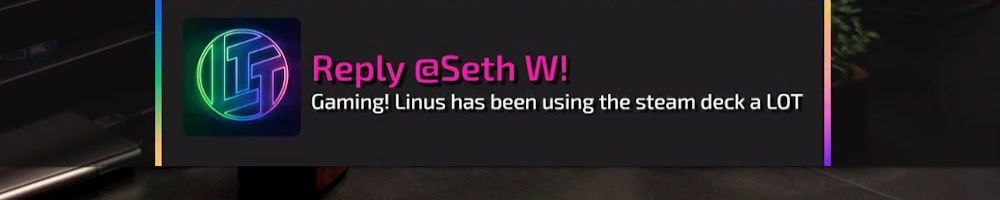 Reply @Seth W! Gaming! Linus has been using the steam deck a LOT