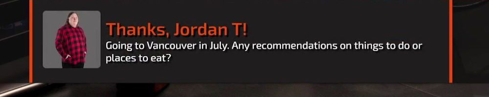 Thanks, Jordan T! Going to Vancouver in July. Any recommendations on things to do or places to eat?