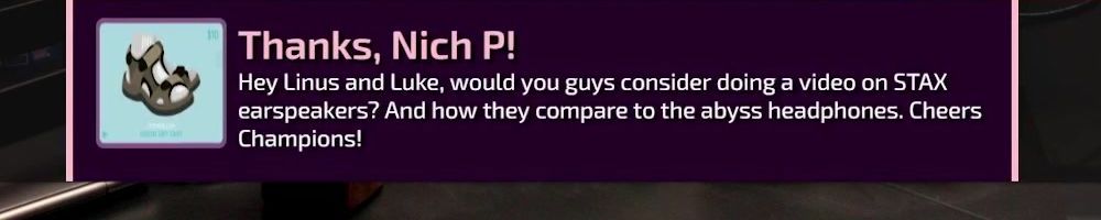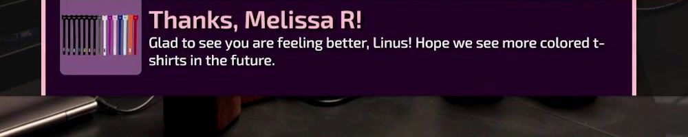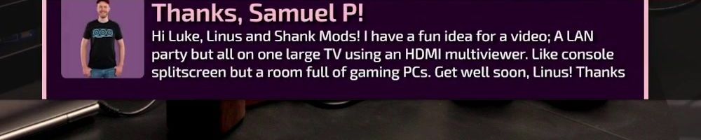 Thanks, Samuel P! Hi Luke, Linus and Shank Mods! I have a fun idea for a video; A LAN party but all on one large TV using an HDMI multiviewer. Like console splitscreen but a room full of gaming PCs. Get well soon, Linus! Thanks