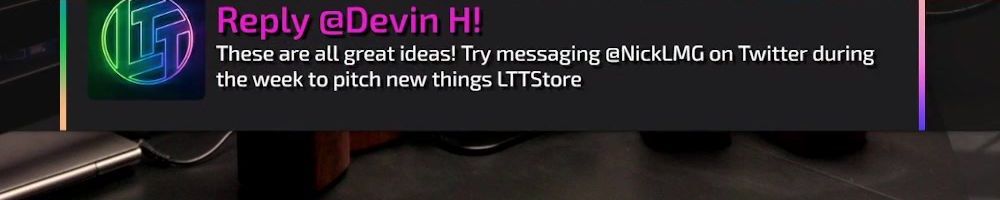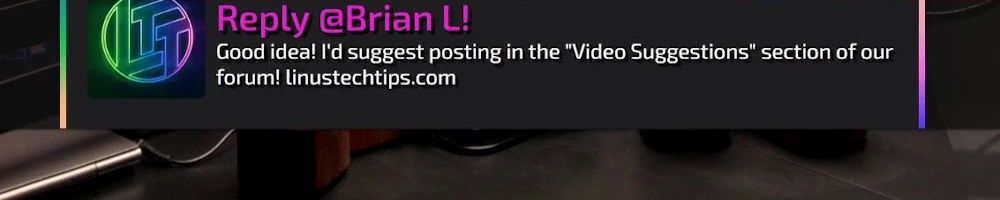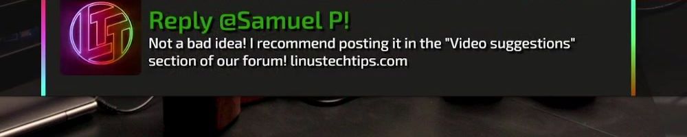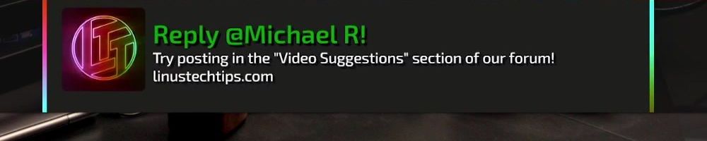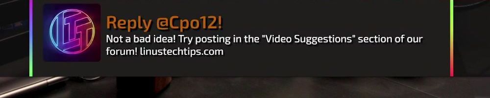 Reply @Samuel P! Not a bad idea! I recommend posting it in the "Video suggestions" section of our forum! linustechtips.com