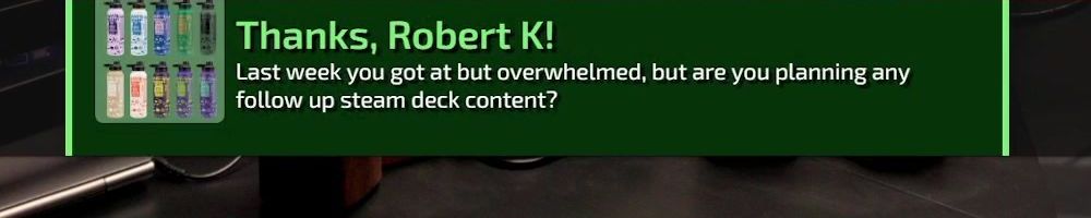Thanks, Robert K! Last week you got at but overwhelmed, but are you planning any follow up steam deck content?