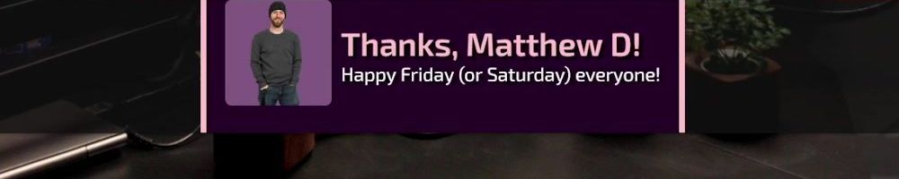 Thanks, Matthew D! Happy Friday (or Saturday) everyone!