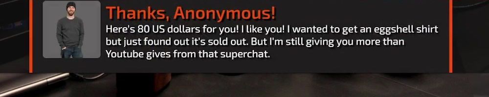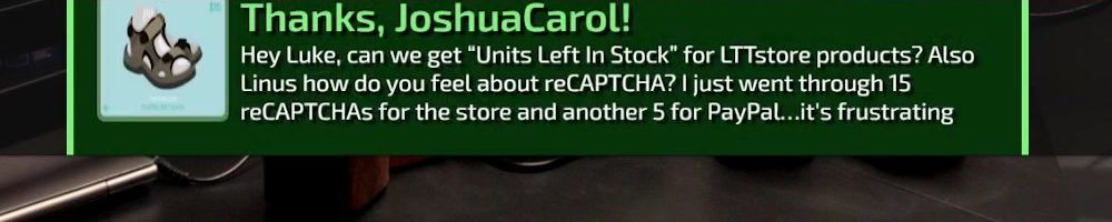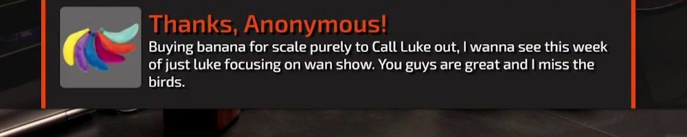 Thanks, Anonymous! Buying banana for scale purely to Call Luke out, I wanna see this week of just luke focusing on wan show. You guys are great and I miss the birds.